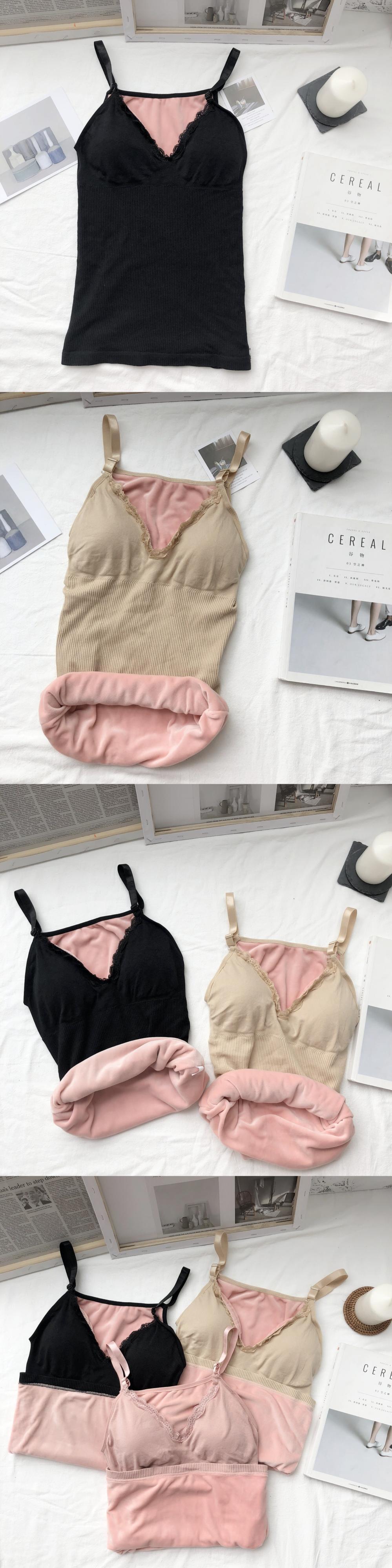 サーマルアンダーウェアキャミソールベストレディース秋冬タイトフィット厚みのあるプラスベルベットレースインナーベースシャツトップ ブラックストロベリース98925951902
