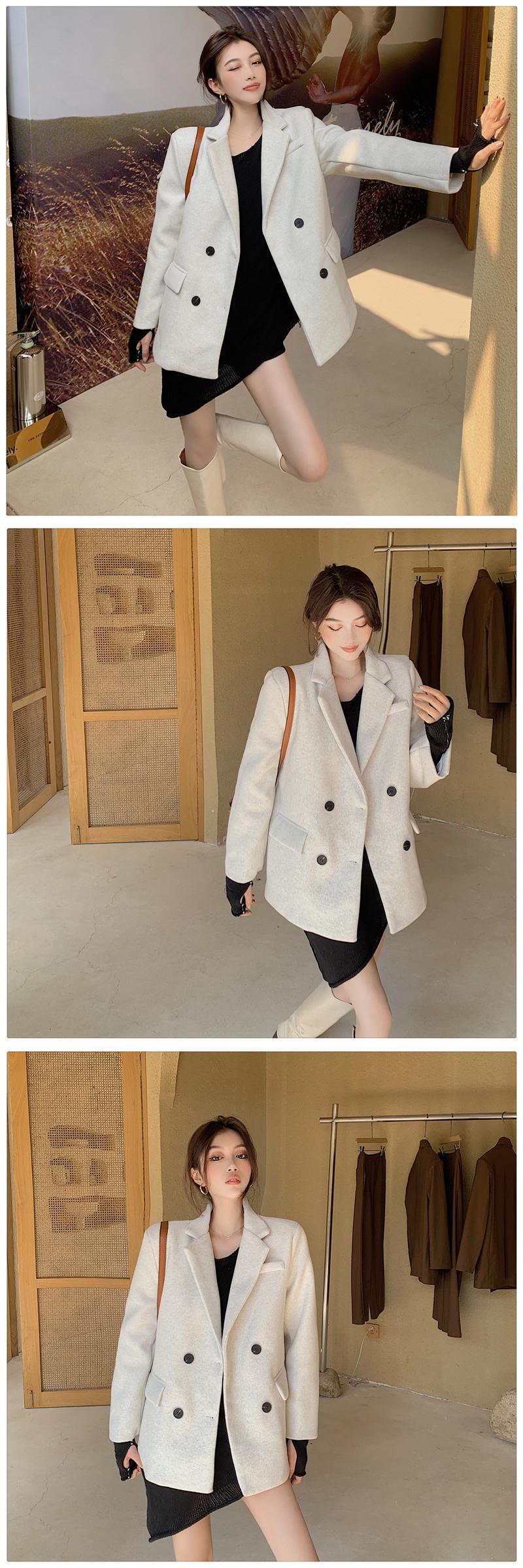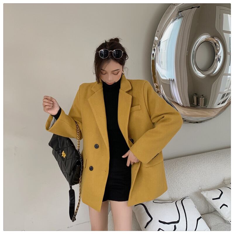 レディーススーツウールウインドブレーカージャケット秋冬厚手2020新しいレトロルーズミドル丈ウールコート ブラックストロベリース21440902894