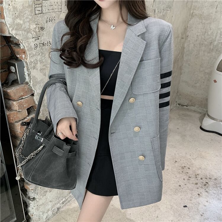 ピュアカラースモールスーツレディース秋ルーズカジュアルスーツ2020新ミドル丈気質トップコート ブラックストロベリース43650499637