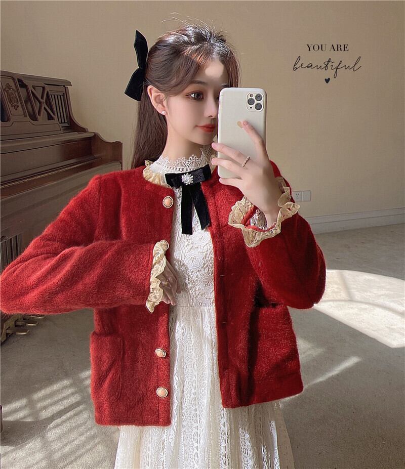 フランスのショートジャケット女性バージョンルーズカジュアルレトロレディース気質赤オールマッチブラウス2020秋冬新作 ブラックストロベリース14667031154