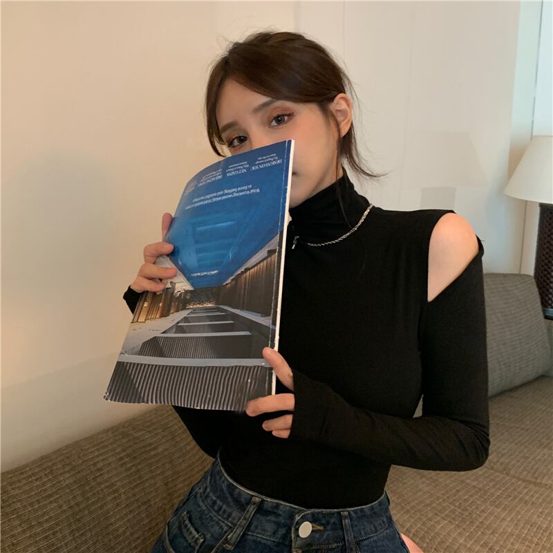 タートルネックボトミングシャツトップス女性2020年秋冬新しいレトロセクシーなストラップレスタイトフィット長袖Tシャツイントレンド ブラックストロベリース89607184206