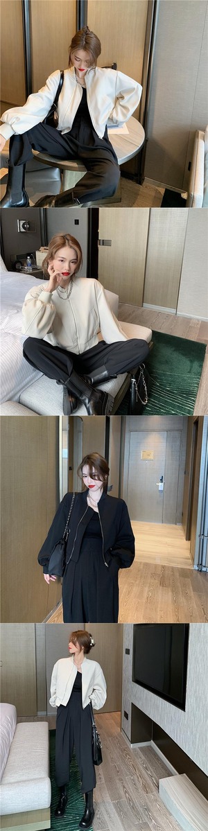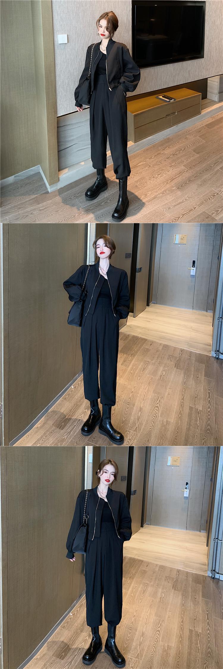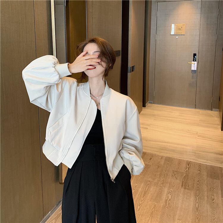 ジッパーグレースモールコート女性2020年秋新しいルーズ長袖ランタンスリーブショートトップインタイド ブラックストロベリース37488679738