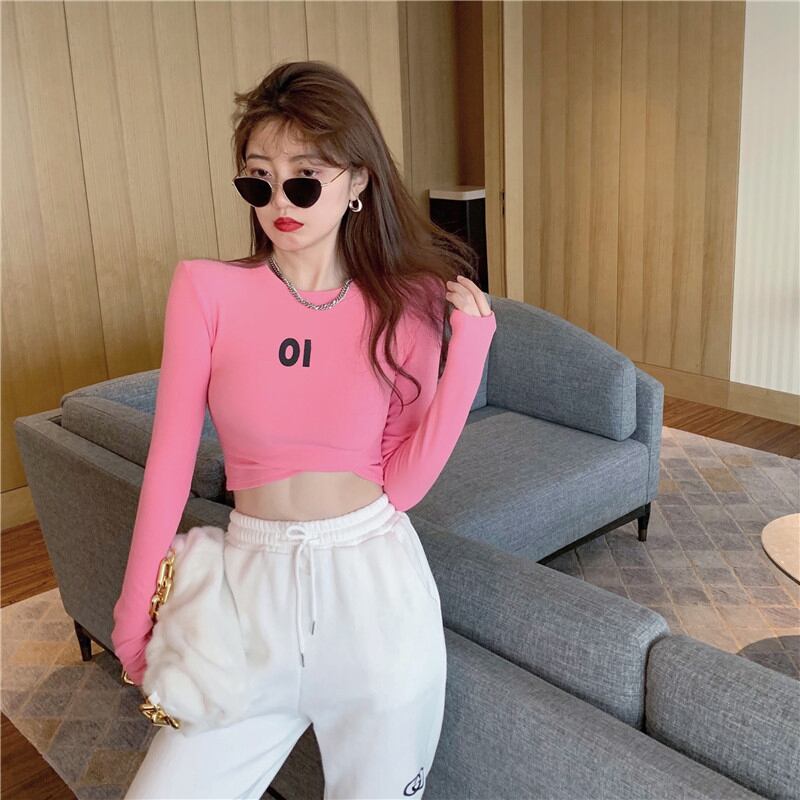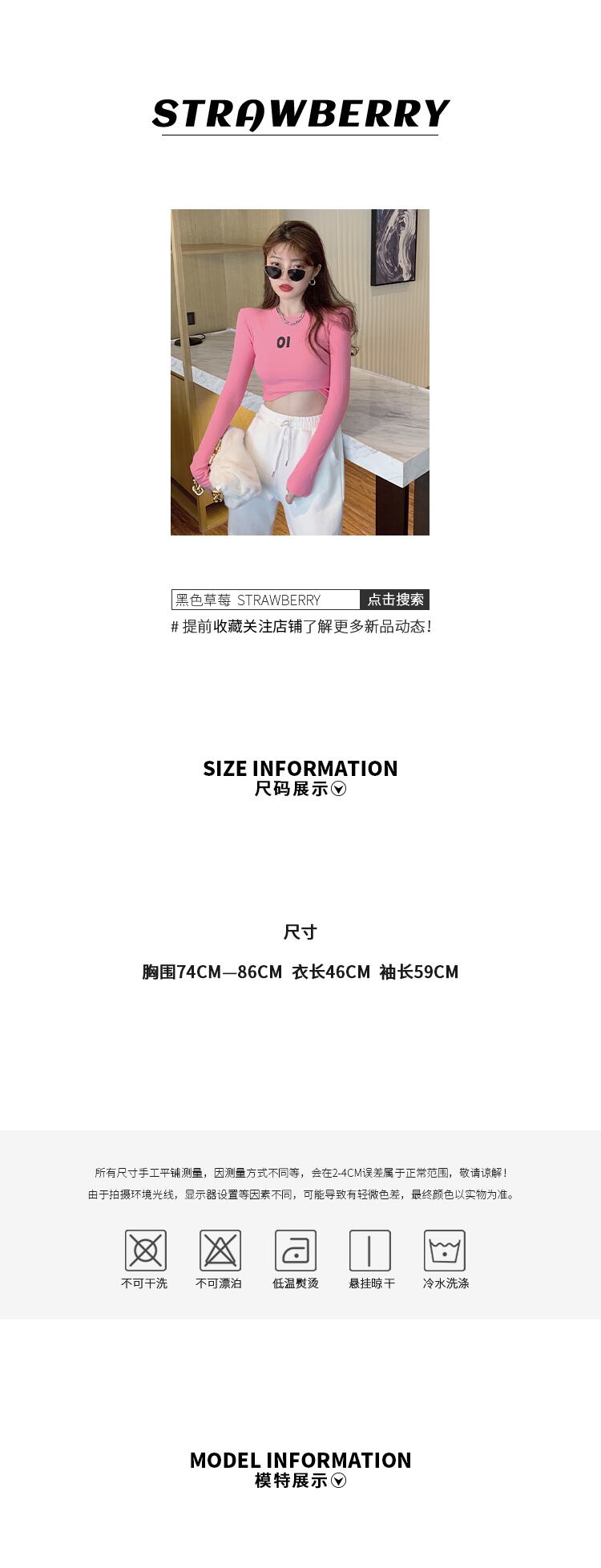 Tシャツレディースショートスリムフィットインナーボトミングシャツ2020秋冬新作ピンク長袖タイトセクシーウエスタンスタイルトップス ブラックストロベリース99446585298