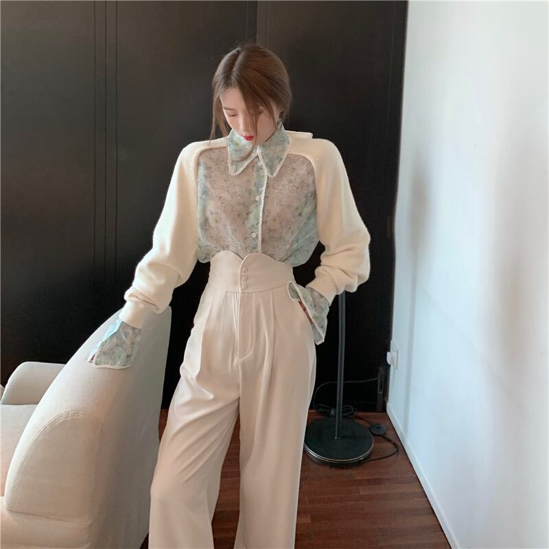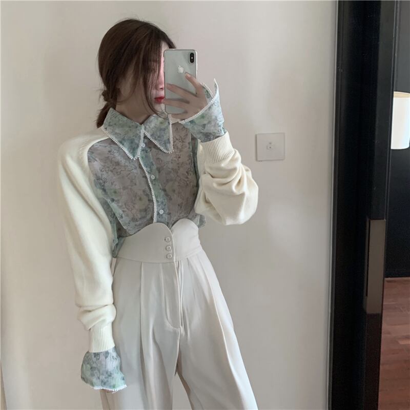 ドールカラーフローラルデザインニッチ長袖シャツトップスレディース2020年秋新作アウターウェアオールマッチシャツ ブラックストロベリース95478131288