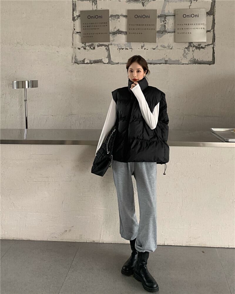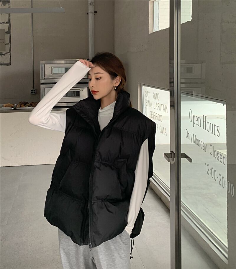 ダウンベストジャケット女性の秋と冬の白いルーズチョッキチョッキベスト2020新しいアウターウェアノースリーブトップ ブラックストロベリース26288368211