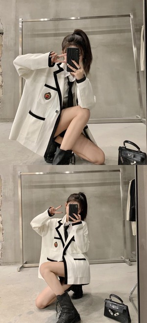 スタイルホワイト気質スモールスーツジャケット女性2020年秋新しいオールマッチルーズスーツジャケット ブラックストロベリース49938367968