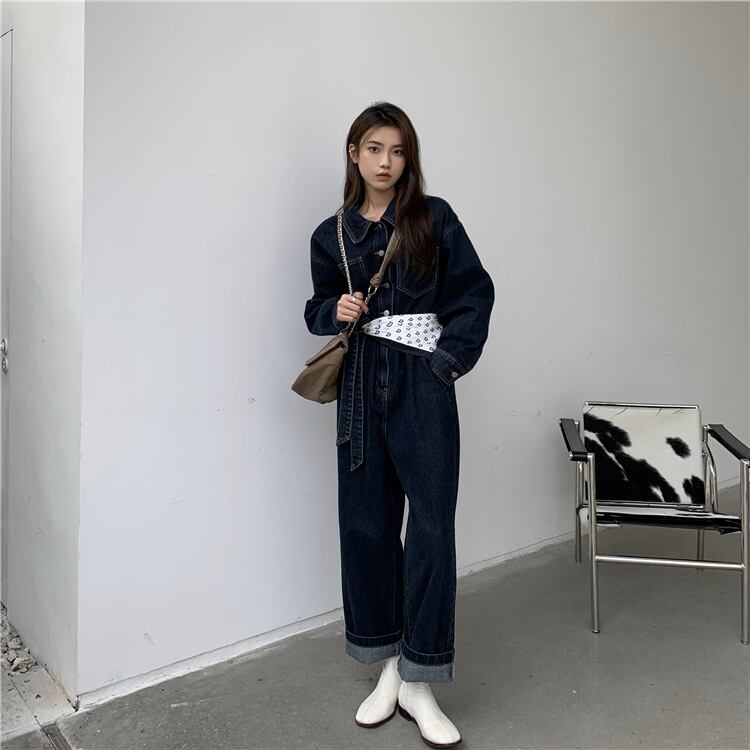 ジーンズレディースハイウエストスリミングストレートルーズワイドレッグパンツ2020秋冬新バージョンオーバーオール ブラックストロベリース639348487