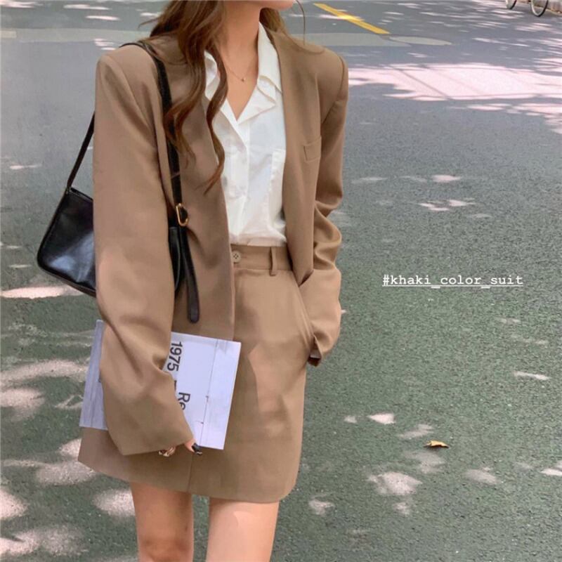 カーキスモールマンフライドストリートスーツレディース秋カジュアルスーツ2020新気質ト​​ップコート ブラックストロベリース71748980347