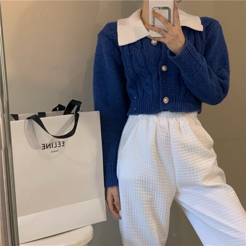 セーター ショートルーズブルートップス カーディガンジャケット ブラックストロベリース2042723426