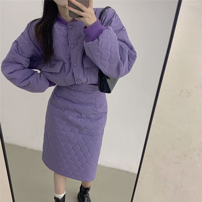 色:紫のコート,黒いジャケット,紫のスカート,黒スカート