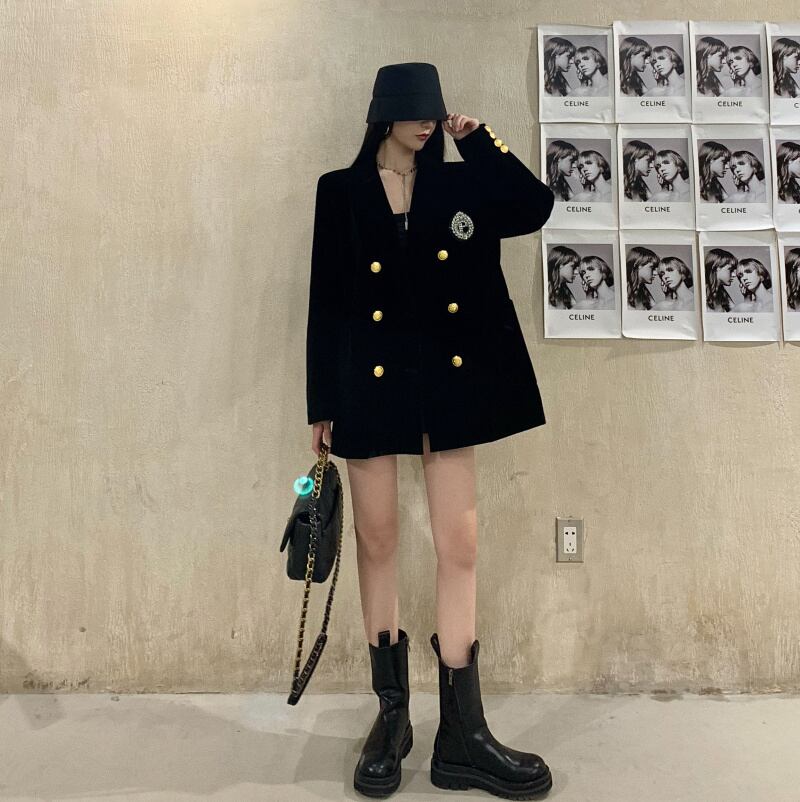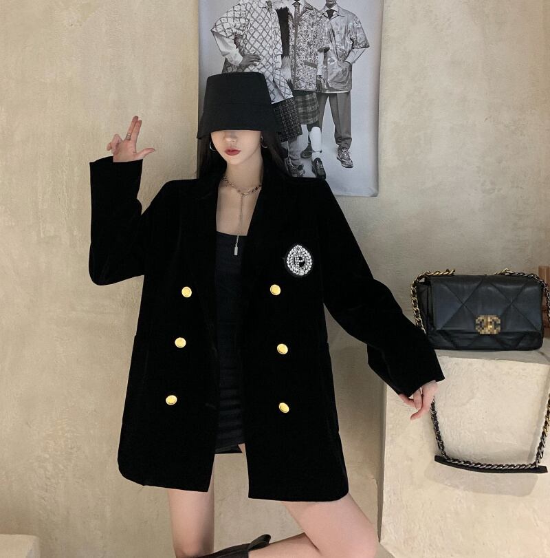 ウールスーツジャケットレディースミドル丈厚手のキルティングブラックスモールウールウールコート2020年秋冬新作アイテム ブラックストロベリース66167407489