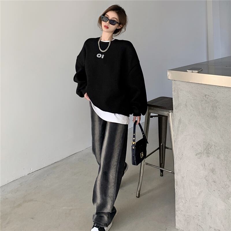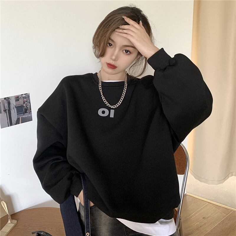スウェットシャツレディースイントレンディブラックミドル丈ルーズスタイルジャケット2020秋冬新作レイジーウィンドオールマッチトップ ブラックストロベリース31801586356