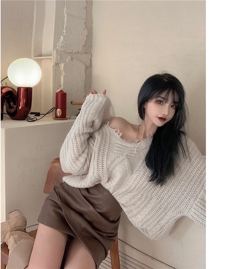 ツイストニットセーターセーターコート女性の2020年秋冬新しい中空ルーズアウターウェアショートレイジーウィンドトップ ブラックストロベリース91920807188