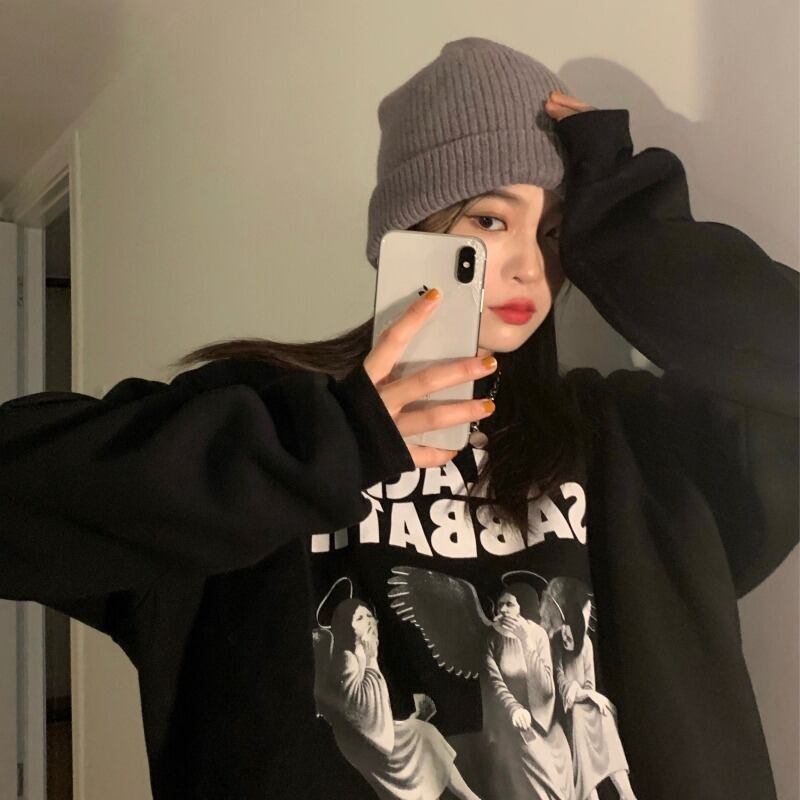 セーターの女性とベルベットの厚いルーズインタイドプリントジャケット2020秋と冬の新しいシックなラウンドネックトップ ブラックストロベリース8762922512