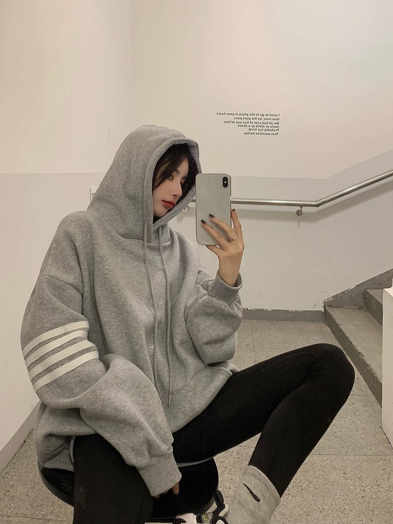 フード付きセーターコートの女性の秋と冬に加えて、ベルベットの厚みを増す2020新しいルーズシックな怠惰な白いトップ ブラックストロベリース66603356004