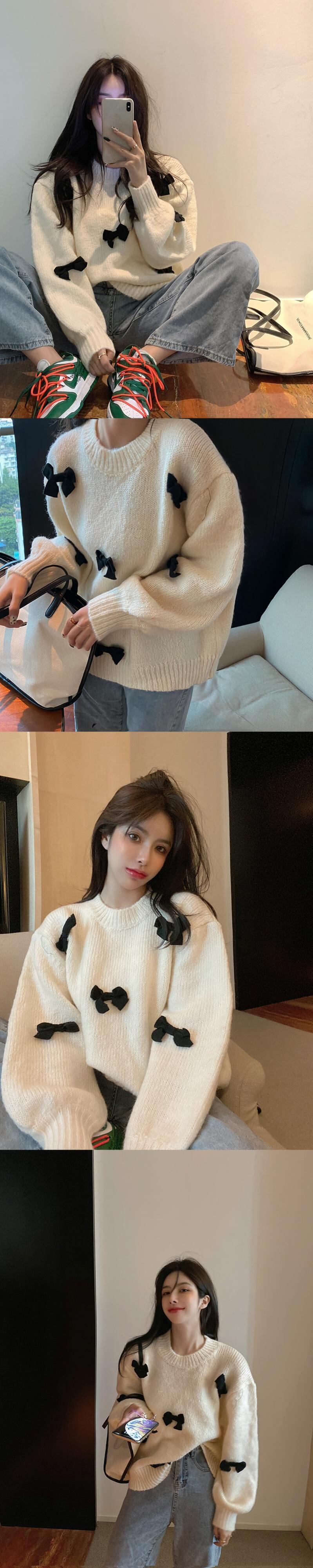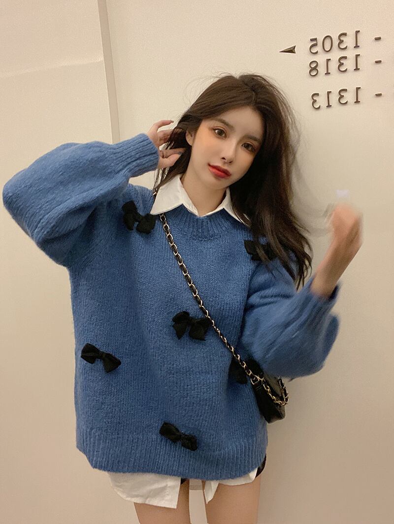 ニットセーター ジャケット オータムウィンターリボンルーズスタイルプルオーバー トップス 秋物 冬物 ブラックストロベリース1409292855