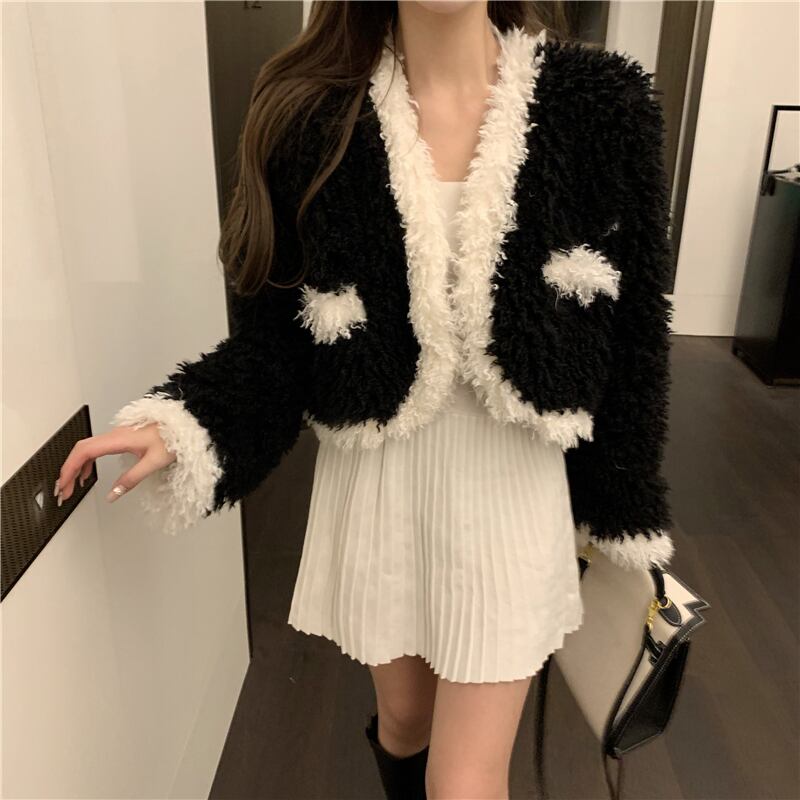 ジャケット レディースショートルーズカジュアルスタンダードオータムウィンター レトロ 秋物 冬物 ブラックストロベリース60722312612
