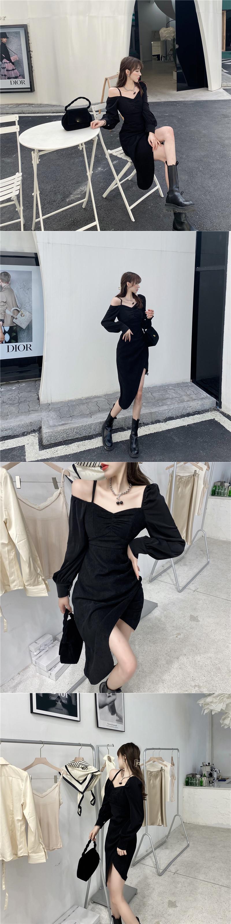 コーデュロイドレス レディースオータムウィンタースカート ウェスト ロング 秋物 冬物 ブラックストロベリース23015242925