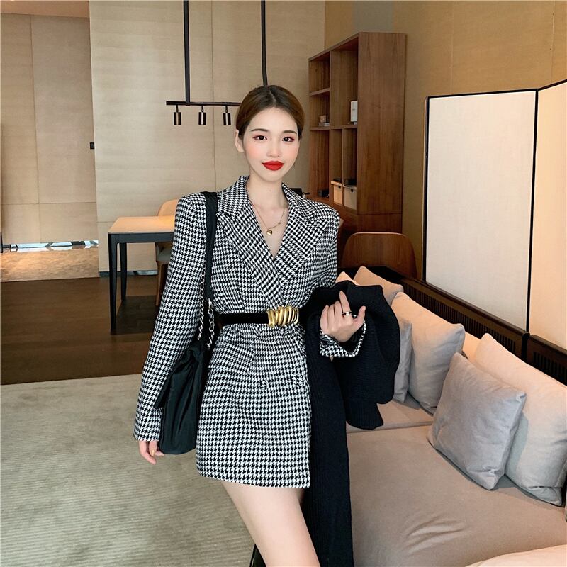 オータムウィンターブラック格子柄カジュアルコート トップス 秋物 冬物 ブラックストロベリース62653000883