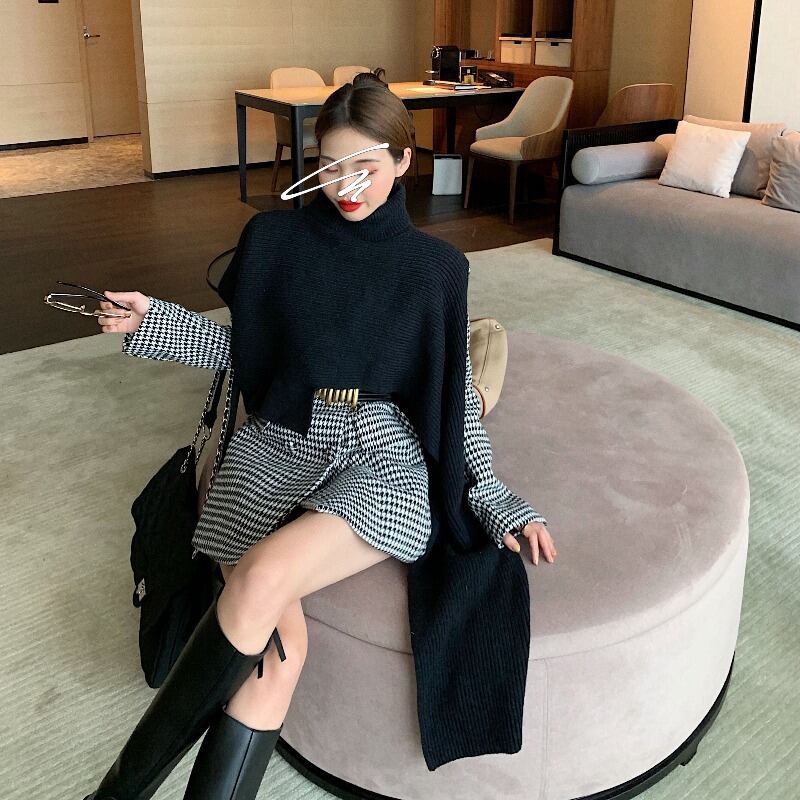 色:黒いセーター,チェック柄スーツ(ベルト送り)