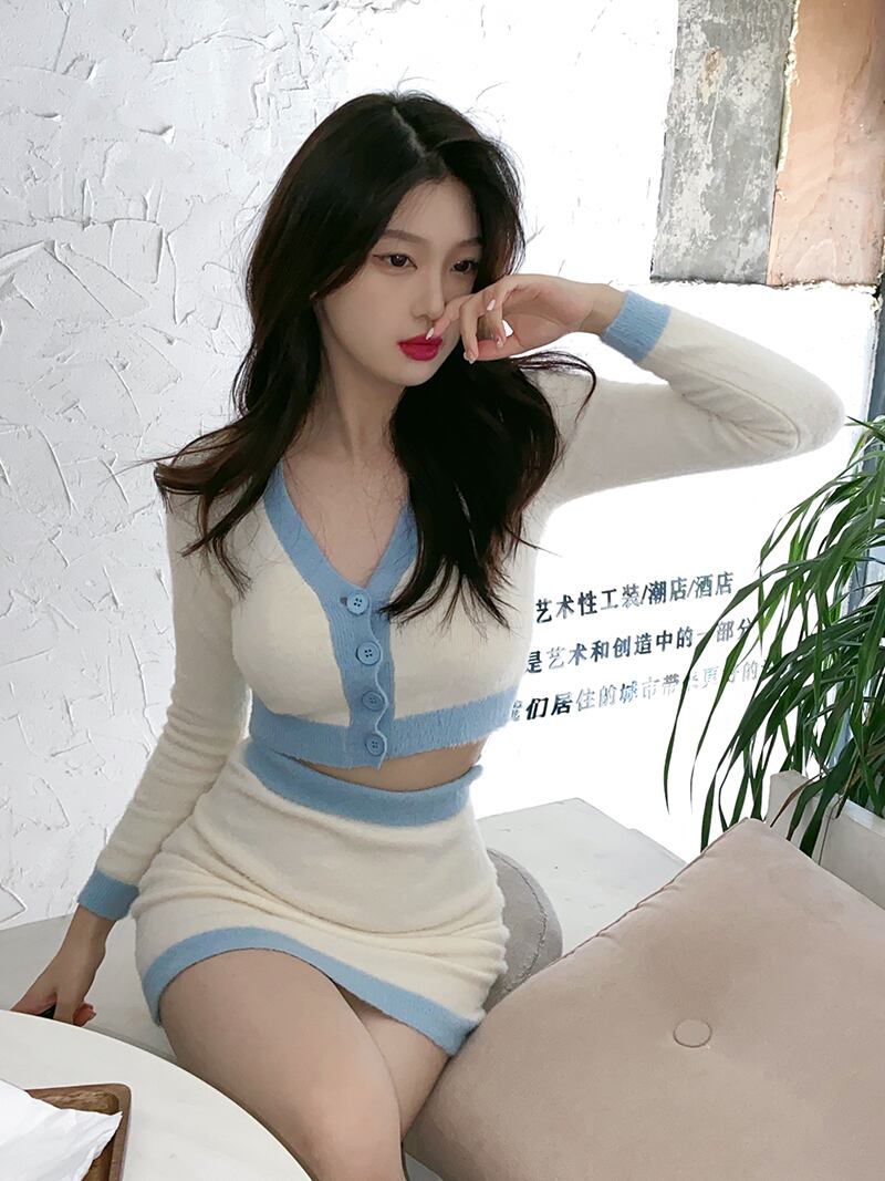 シャツ オータムウィンターセーター ニットカーディガンショートスタイルVネックトップス ロング 秋物 冬物 ブラックストロベリース60383856585