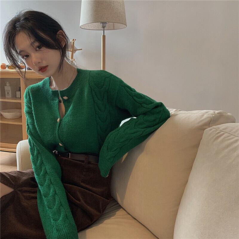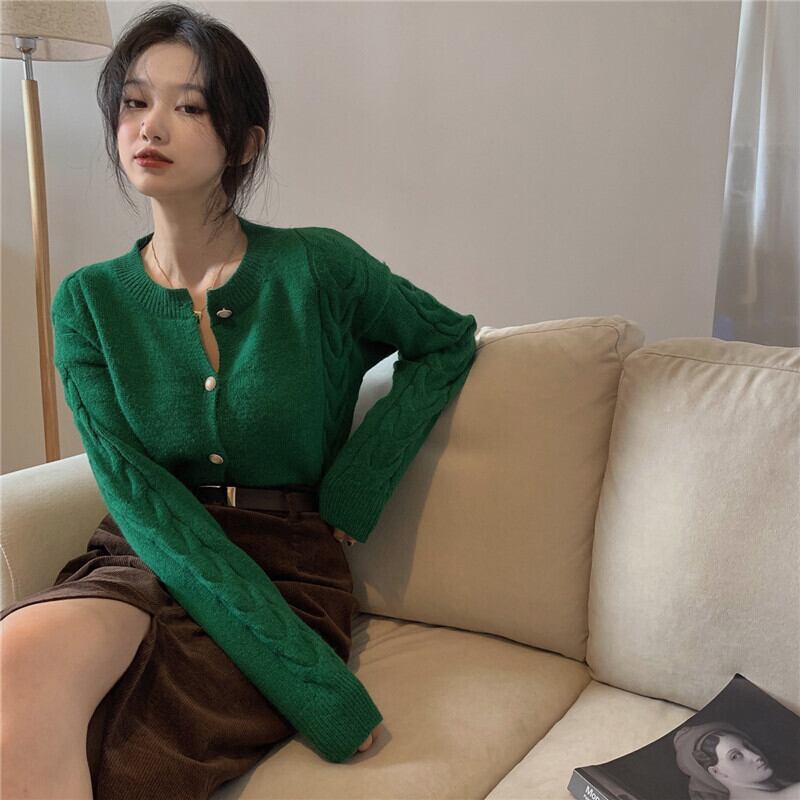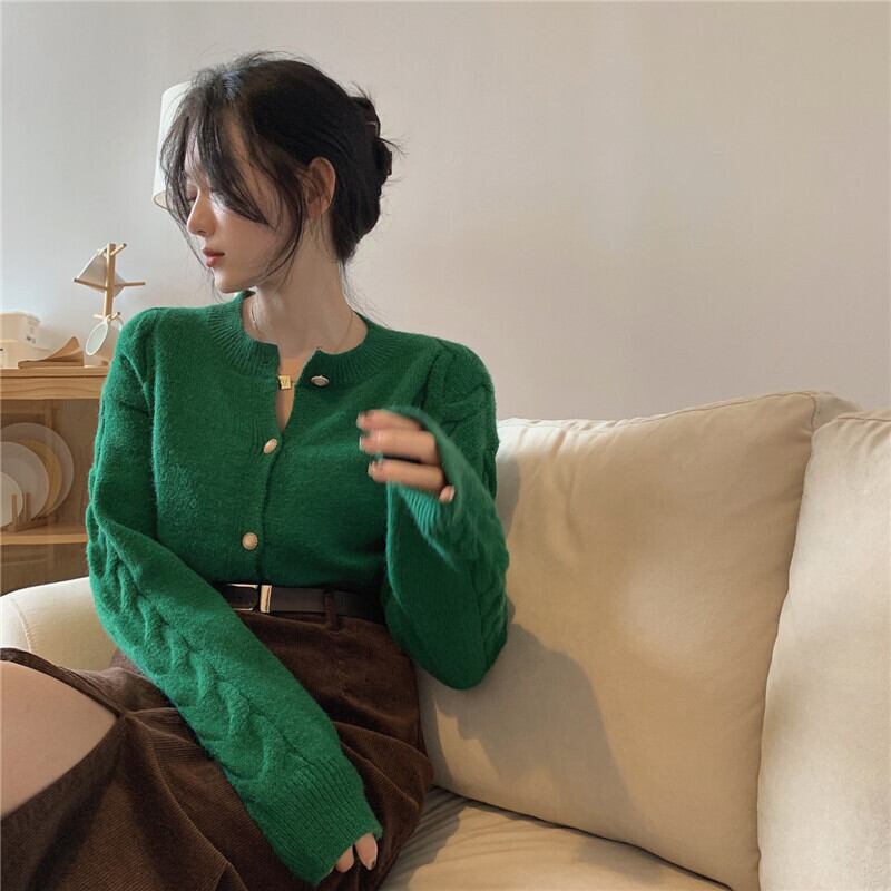 ニットセーター カーディガンジャケット レディースオータムウィンタースタンダードルーズショートトップス レトロ 秋物 冬物 ブラックストロベリース42042829571