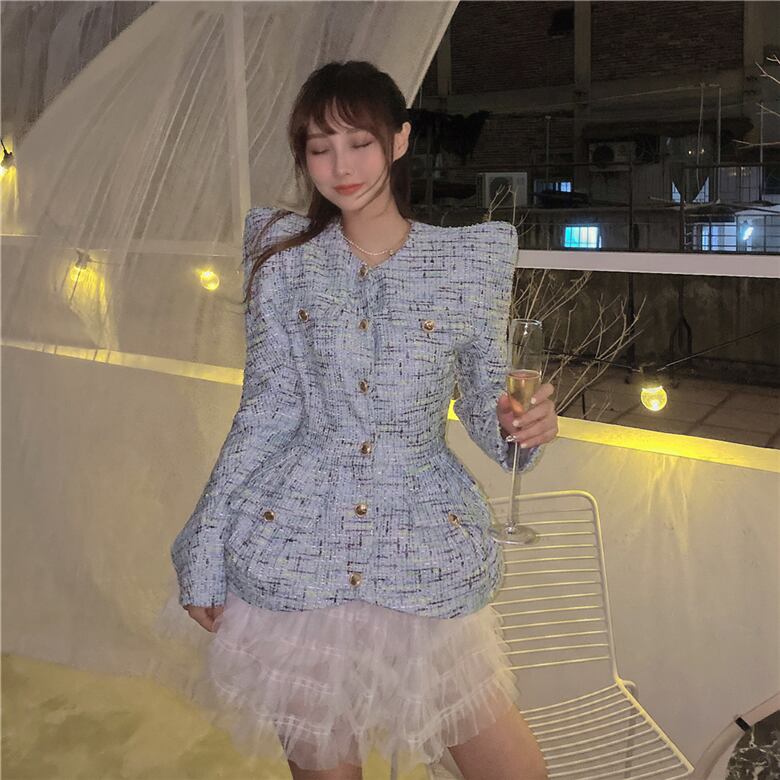 色:青いコート,白いスカート