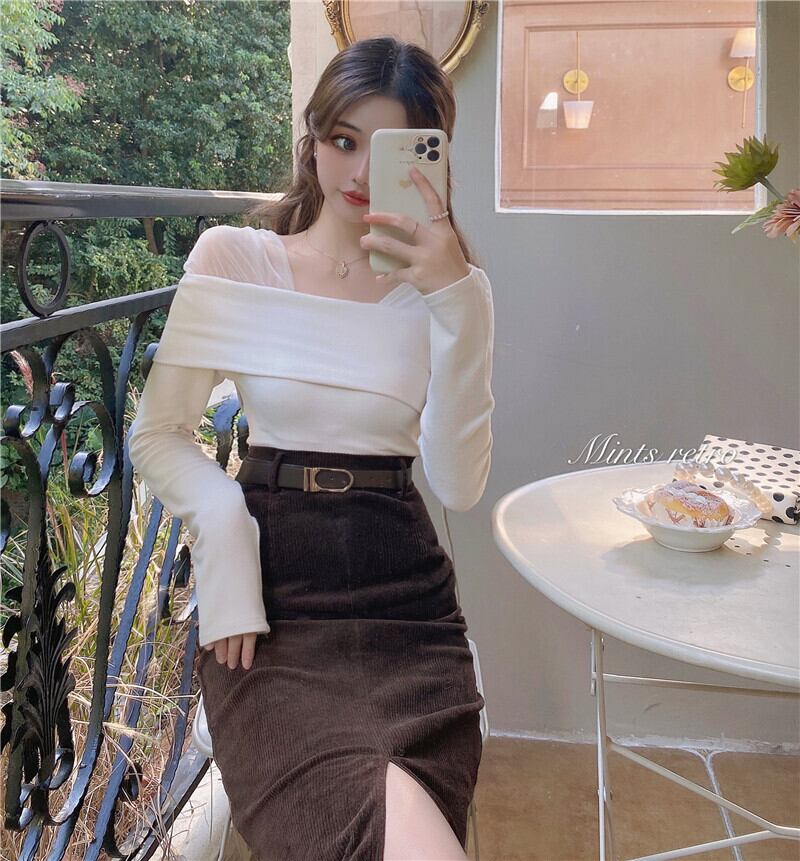 Tシャツ シャツ スリムホワイトオータムウィンタースタイル ロング コルセット 秋物 冬物 ステッチ ブラックストロベリース32275848850