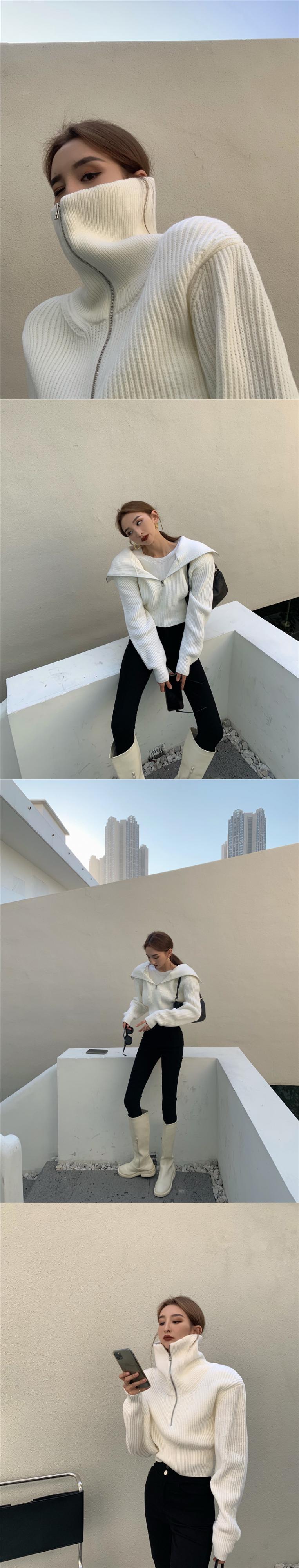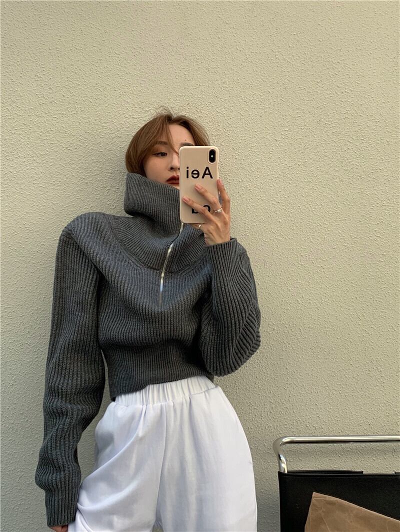 セーター ジッパーショートルーズニットオータムウィンターベージュトップス 秋物 冬物 ブラックストロベリース99443996562