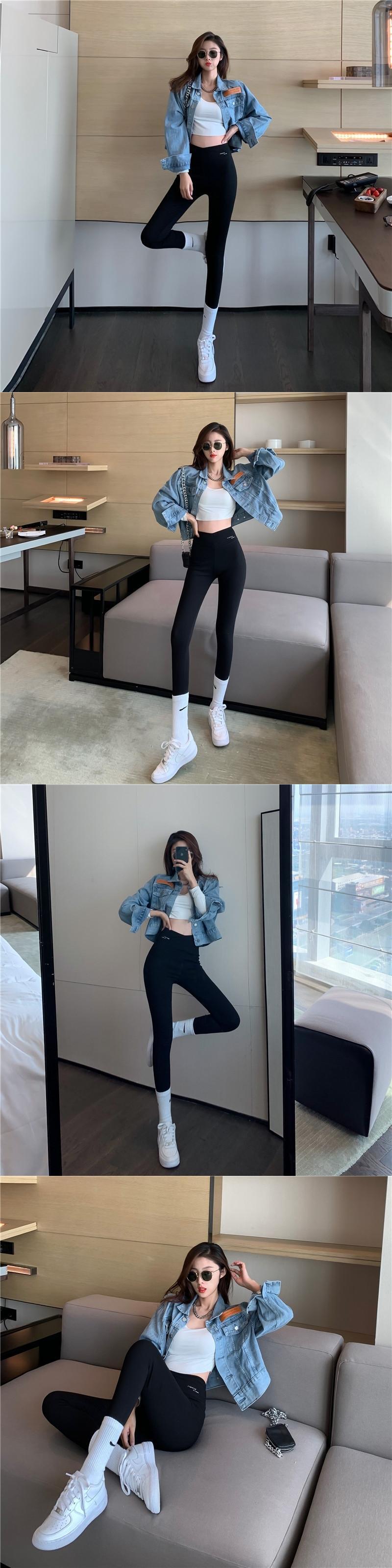 レギンス ベルベットブラックオータムウィンターハイウェストウェストスリムパンツ 秋物 冬物 ブラックストロベリース84968448917