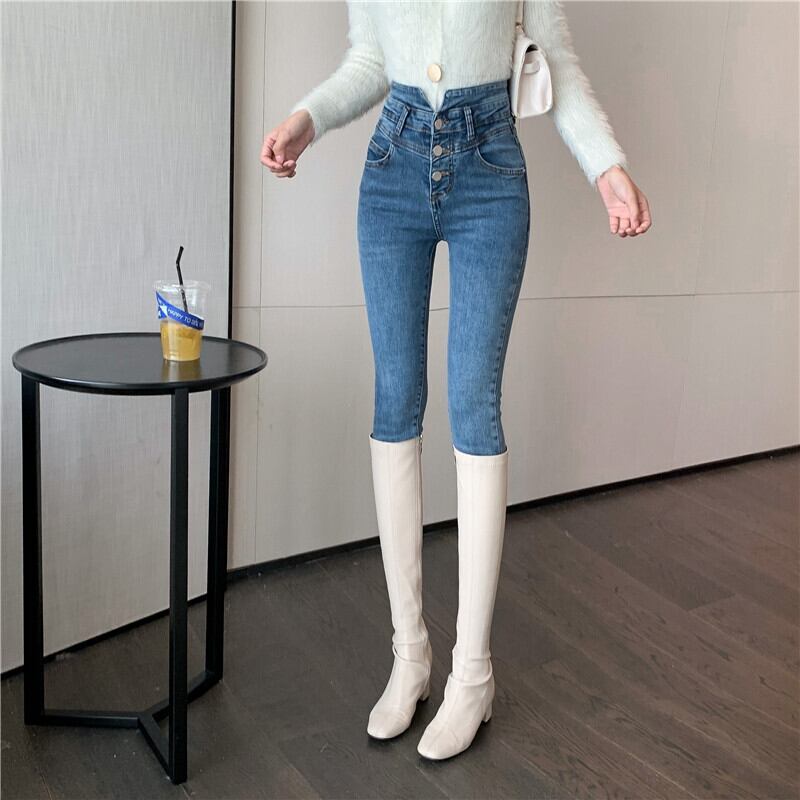ジーンズ オータムウィンターハイウェストウェストスリムダークパンツ 秋物 冬物 ブラックストロベリース87455920820
