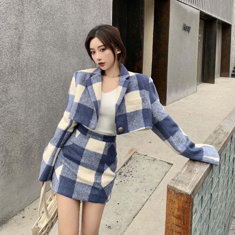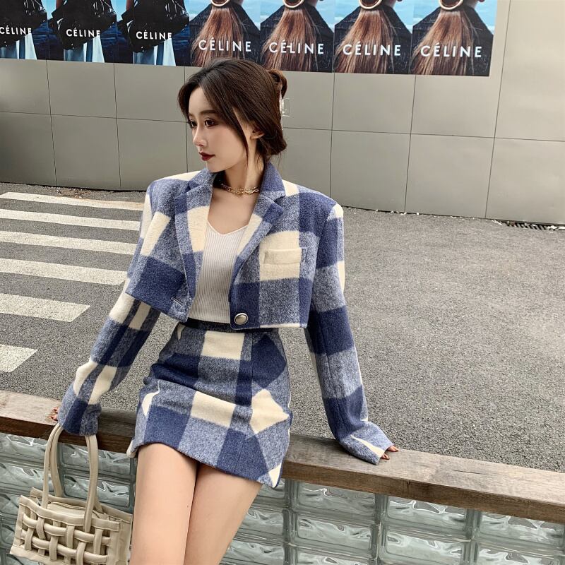 ジャケット 格子柄ショートスリムカジュアルオータムウィンタースタイル 秋物 冬物 ブラックストロベリース53814284944