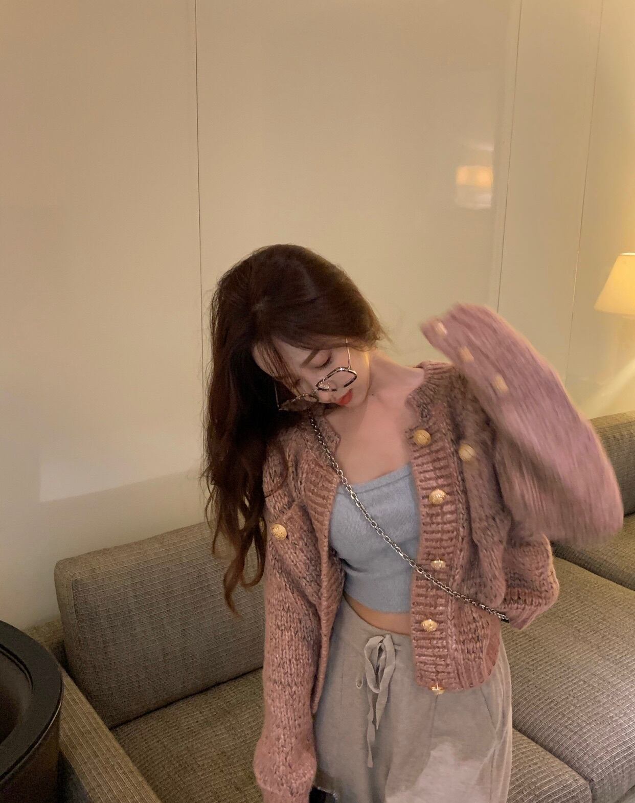 スタンダードニットセーター カーディガンジャケット オータムウィンタースタイルルーズトップス ロング レトロ 秋物 冬物 ブラックストロベリース75094685005