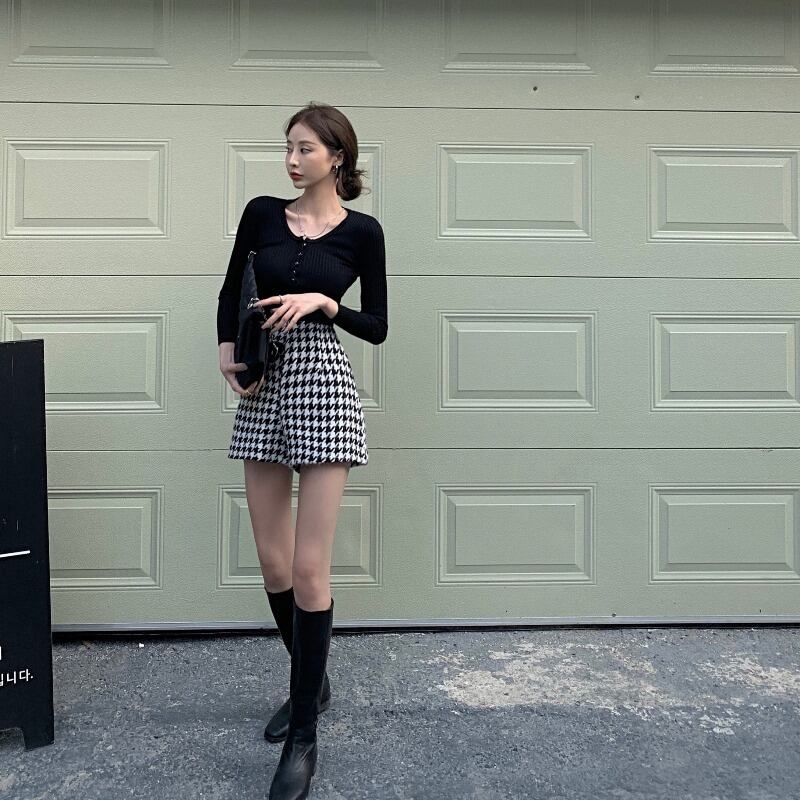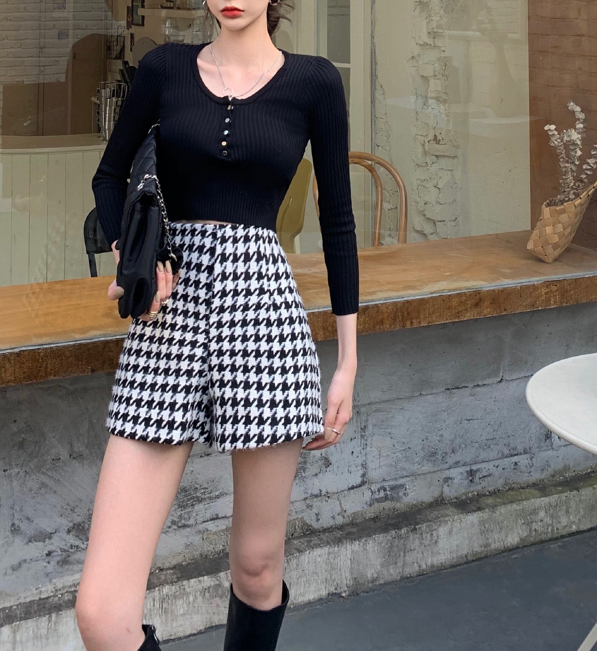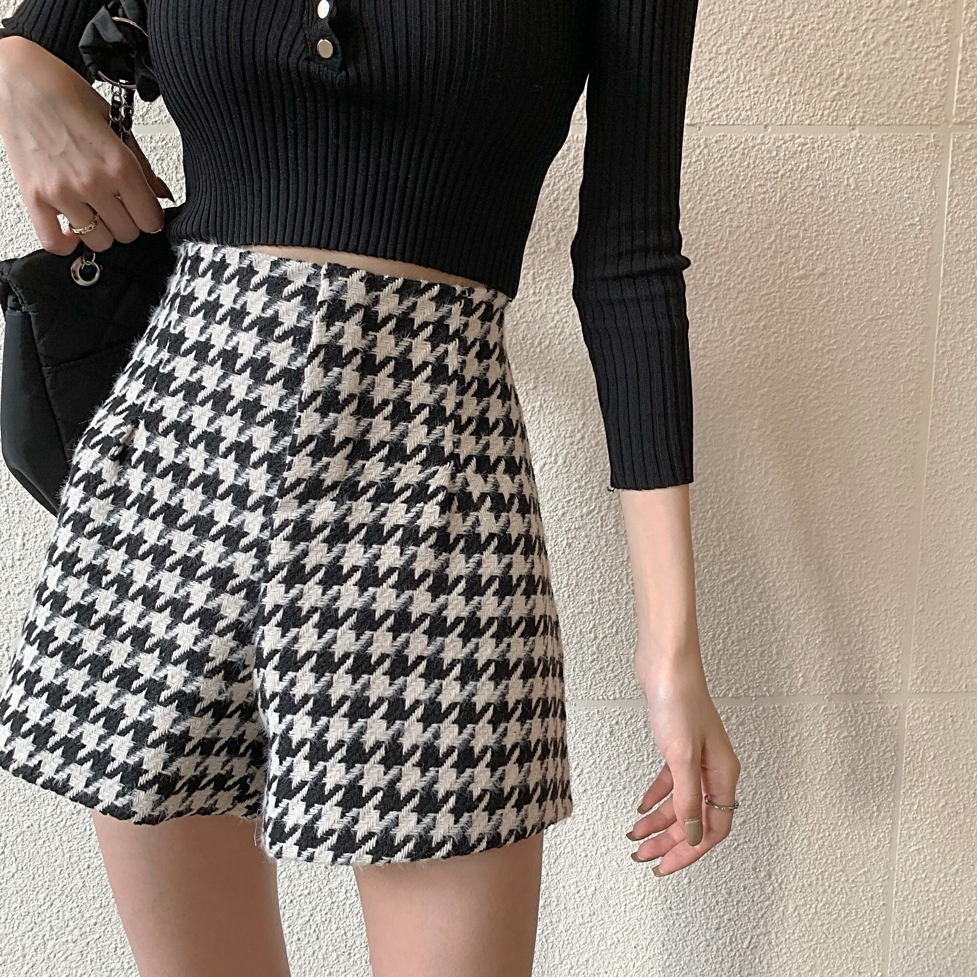 ショーツ ハイウェストウェストスリムカジュアルパンツ オータムウィンター 秋物 冬物 ブルマー ブラックストロベリース26355123479