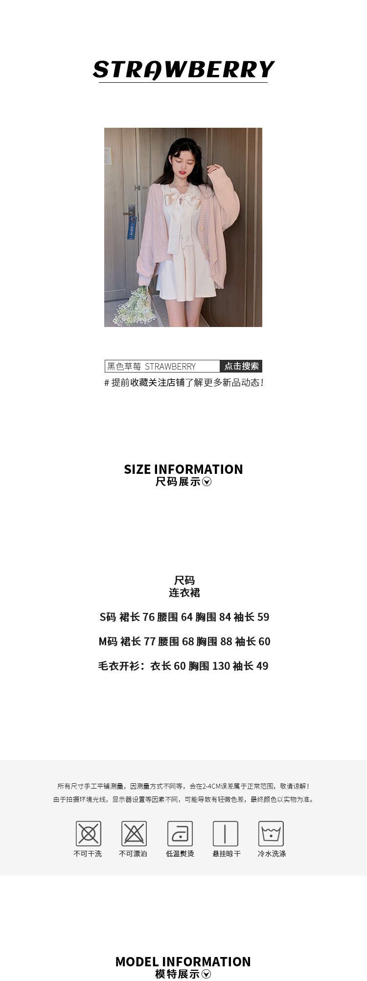 ドレス Vネックショートスカート オータムウィンタースタイル ロング リボン 秋物 冬物 ブラックストロベリース79254096638