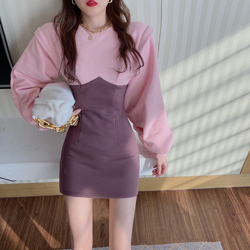 セーター ドレス スリムスカート オータムウィンター薄手ウェスト ロング 秋物 冬物 ステッチ ブラックストロベリース84562769166