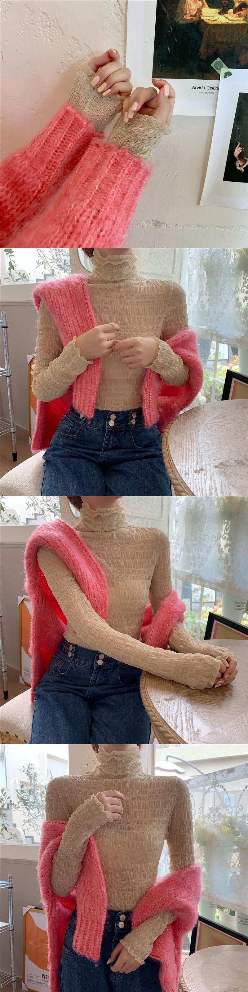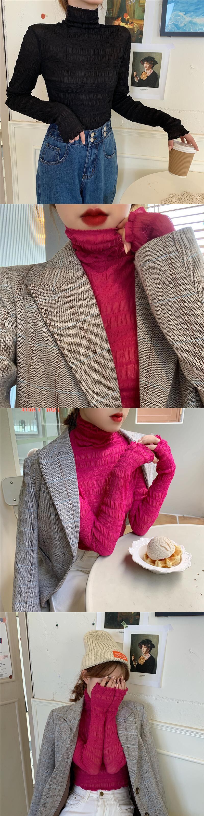 カラーレースメッシュシフォンシャツ オータムウィンタースタイル ロング 秋物 冬物 ブラックストロベリース58368312360