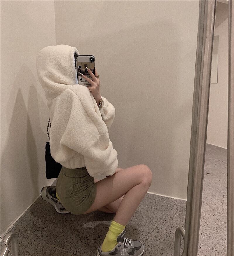 ショートコート オータムウィンターベルベットルーズフードトップス 秋物 冬物 ブラックストロベリース11053903073