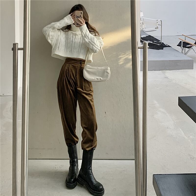 色:グレーのセーター,白いセーター,キャラメルパンツ,黒いズボン