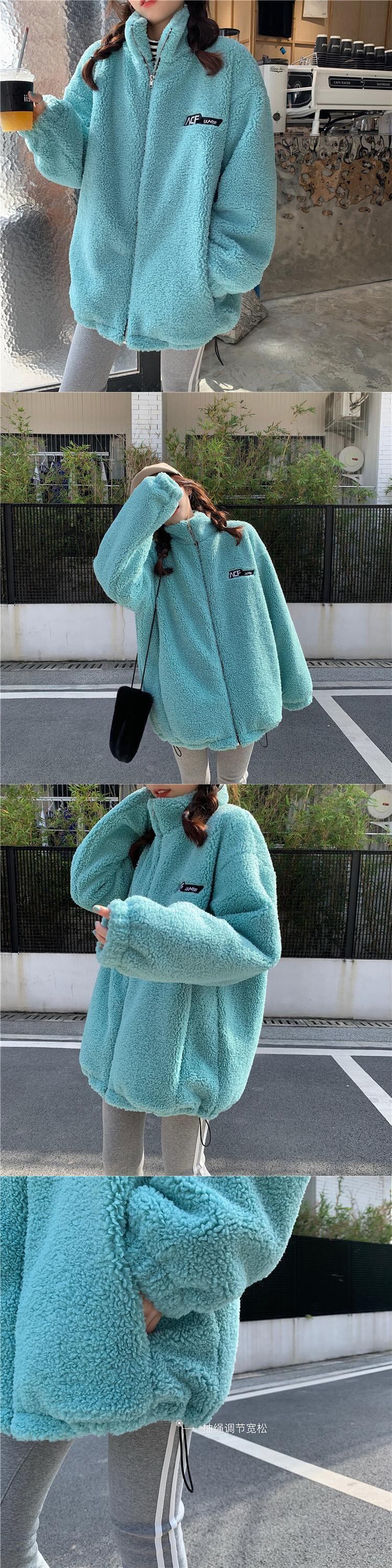 ウールコート オータムウィンターベルベットルーズジッパーセーター カラーカジュアルトップス 秋物 冬物 ブラックストロベリース38523317274
