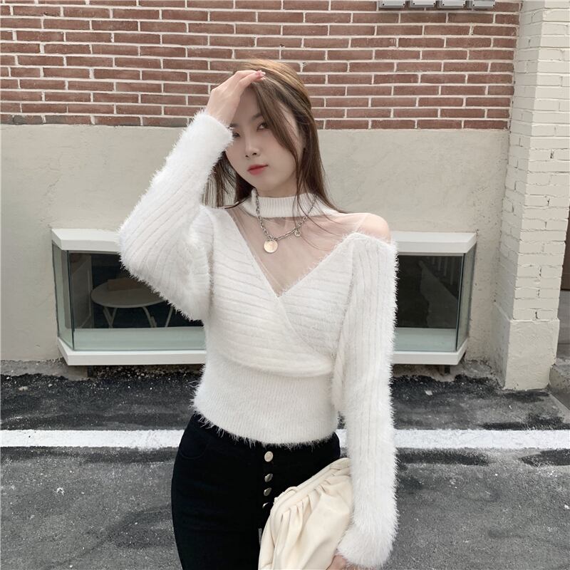 ニットセーター ホワイトシャツ オータムウィンタートップス 秋物 冬物 ステッチ ブラックストロベリース25608254095