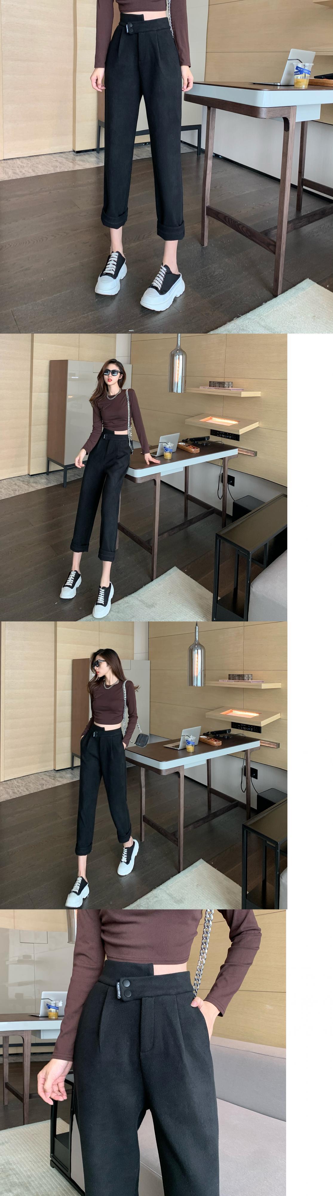 コーデュロイカジュアルパンツ オータムウィンターハイウェストウェストルーズ 秋物 冬物 ブラックストロベリース22945667590