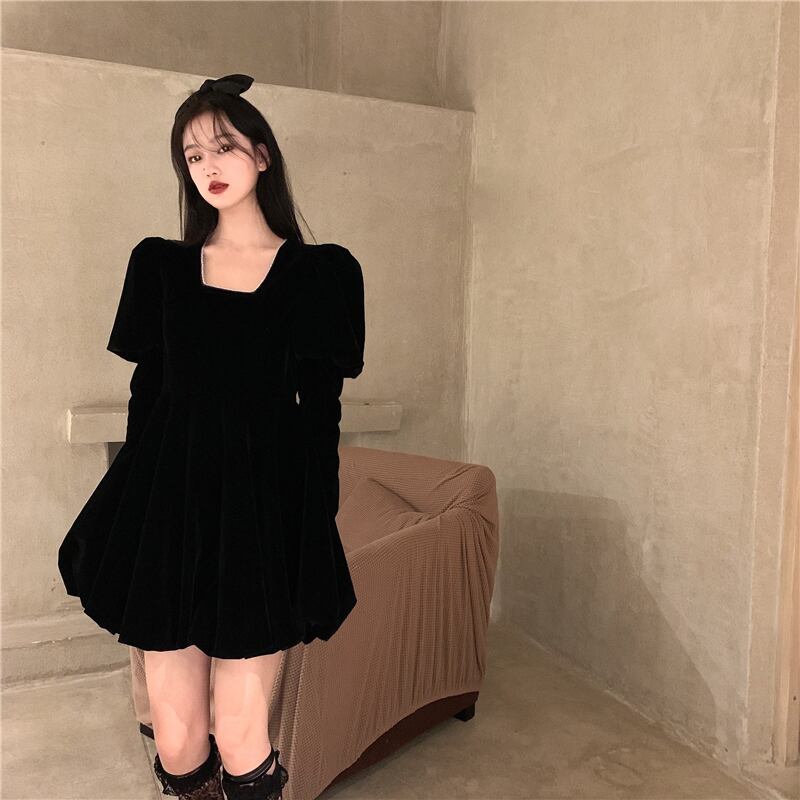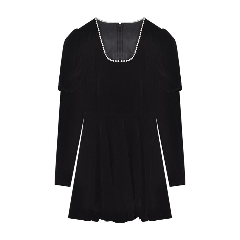 スタイルスタンダードドレス オータムウィンターベルベットスカート ブラックAラインショート ロング レトロ 秋物 冬物 スクウェア ブラックストロベリース56931139955