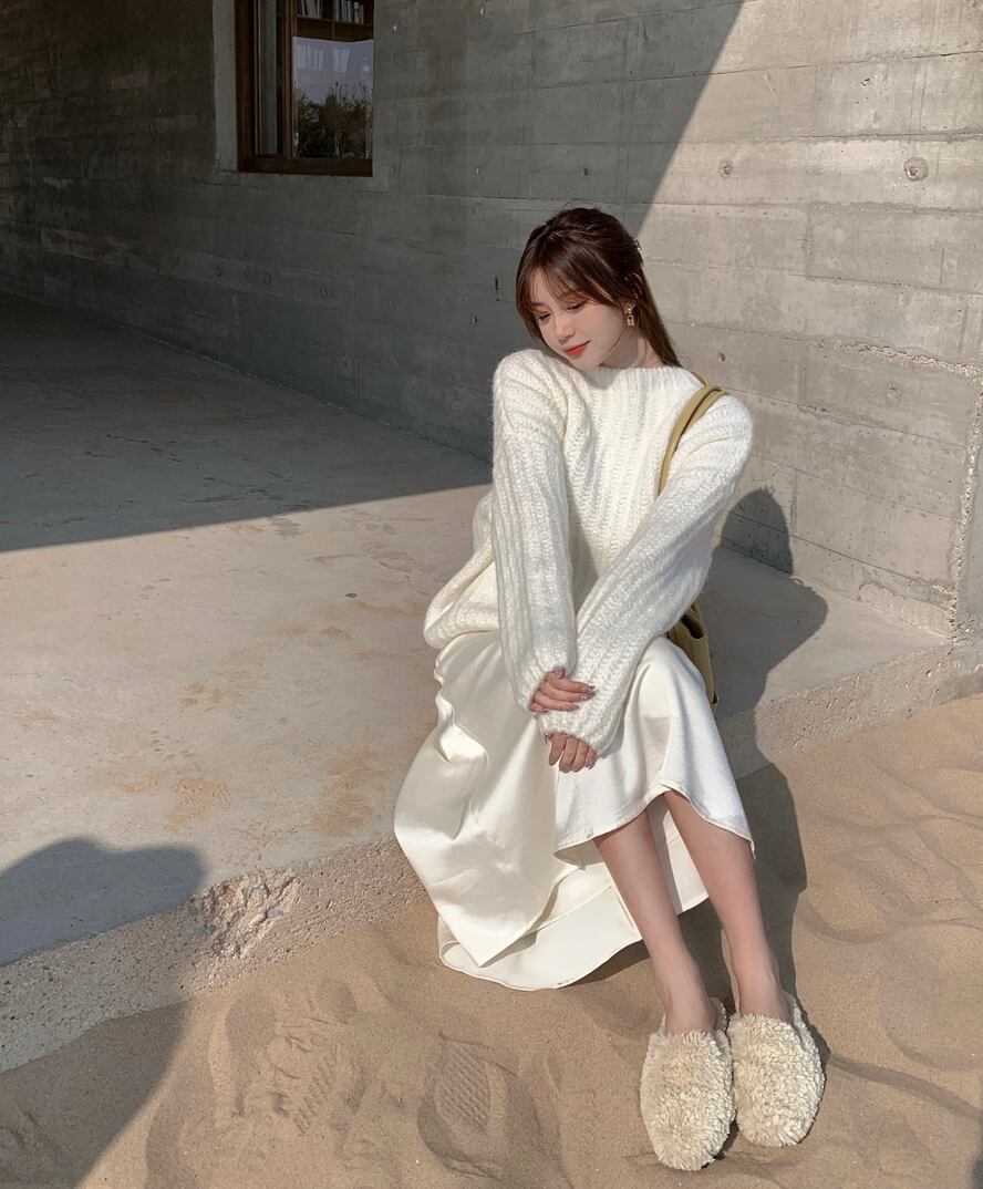 ニットセーター ジャケット オータムウィンターラウンドネックルーズトップス 秋物 冬物 Oネック ブラックストロベリース72495810260