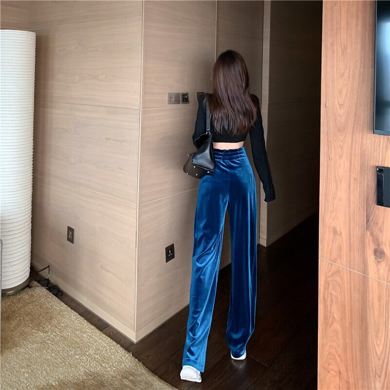 ベルベットパンツ ハイウェストウェストスリムルーズオータムウィンターブラック 秋物 冬物 ブラックストロベリース85667882726