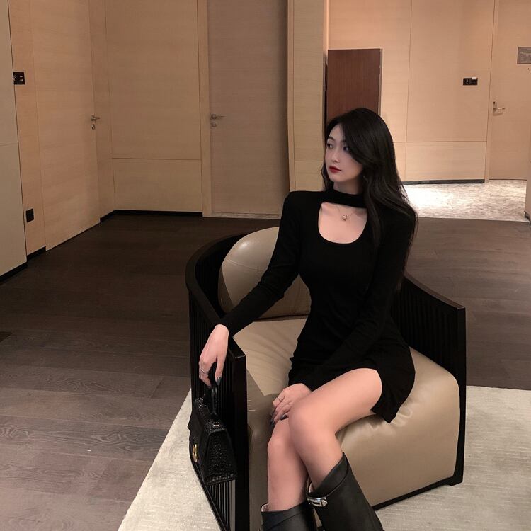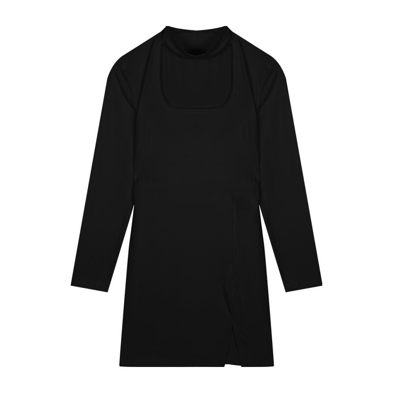 ホワイトドレス スリムショートスカート 長袖スリーブ ロング オータム 秋物 ウィンター 冬物 ブラックストロベリース24957605435