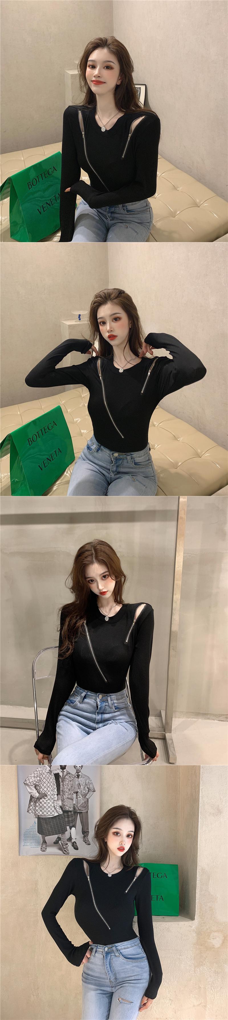 Tシャツ シャツ レディースベルベットスリムホワイトジッパーストラップレスオータムウィンタートップス ロング 秋物 冬物 ブラックストロベリース36349500957