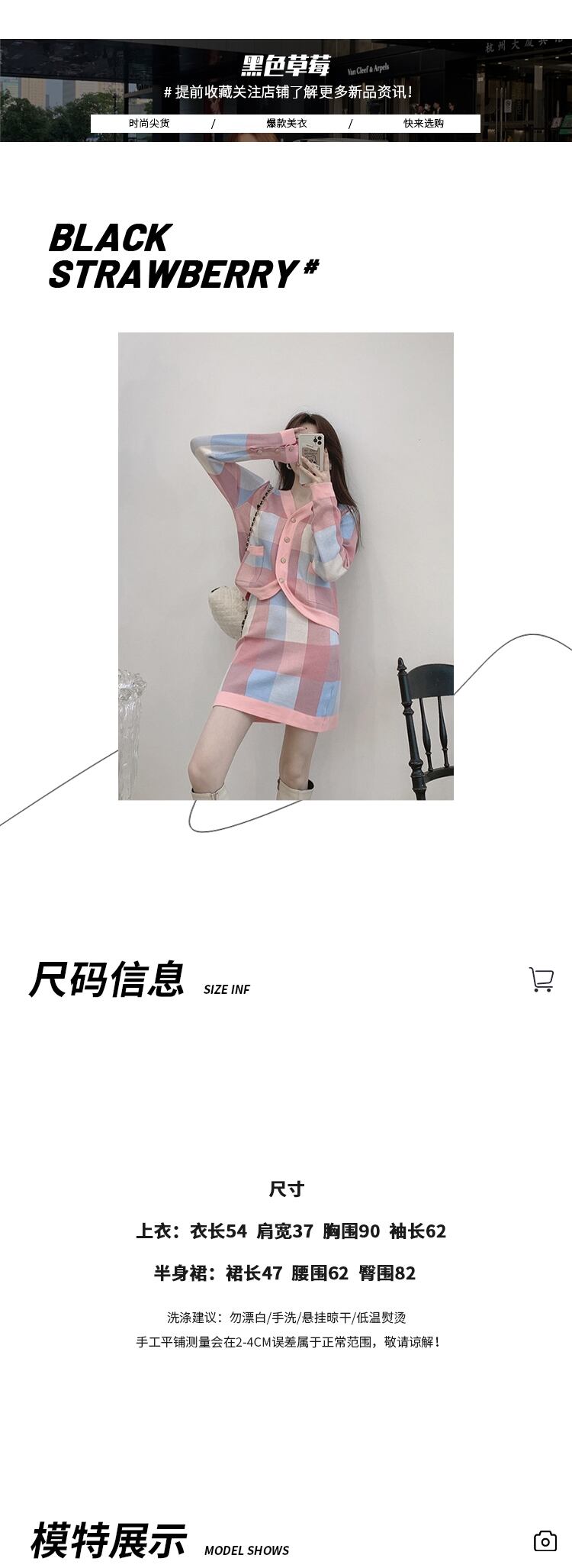 スタンダードニットセーター レディースオータムウィンタースタイルスカート レトロ 秋物 冬物 ブラックストロベリース99760610981