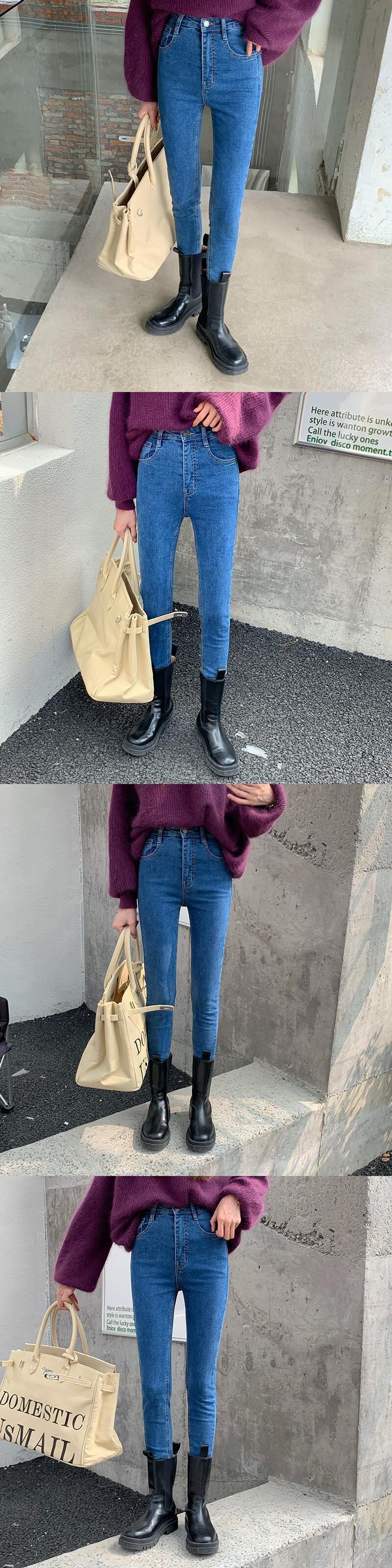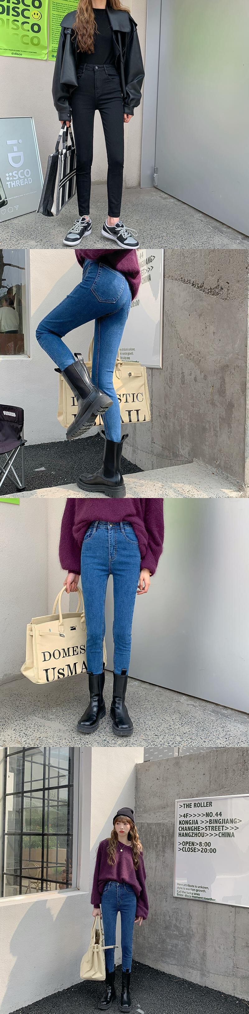 ウェストスキニージーンズ レディーススリムブルーパンツ ウィンター 冬物 ブラックストロベリース87789562192