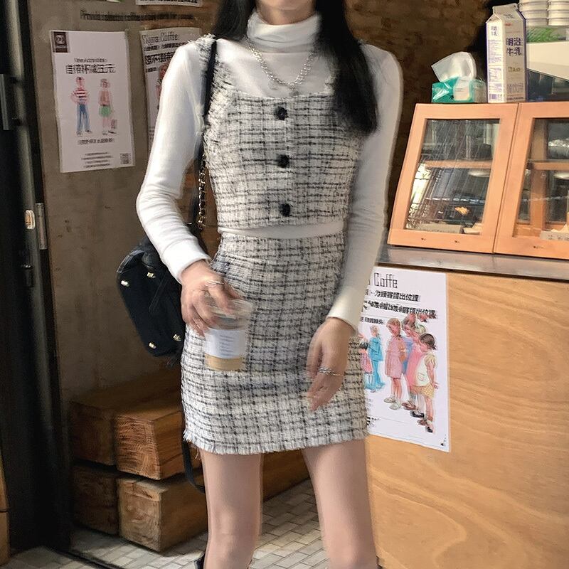 ツィードスカート レディースハイウェストウェストスリムAライン ウィンター 冬物 ブラックストロベリース51218398259